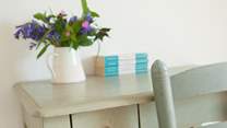 The Miller's House has underfloor heating throughout making it toasty warm at all times. The slate-floored entrance hall is lined with oak benches so you can kick off your shoes, drop the beach bags and head into the sitting-room to relax on the slouchy corner sofa in front of the big TV or snuggle in front of the roaring log fire.