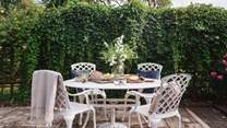 The pretty cottage garden comes complete with a four-person dining table with a parasol and barbeque, perfect for meals alfresco. In addition, there are two Adirondack chairs for lazy days in the sunshine whilst a fire pit is the perfect go-to for starry evenings, wrapped up warm with mugs of hot cocoa (or something a little stronger!). There's also a bubbling stream which runs through the garden, perfect for gazing at from the comfort of the chairs.