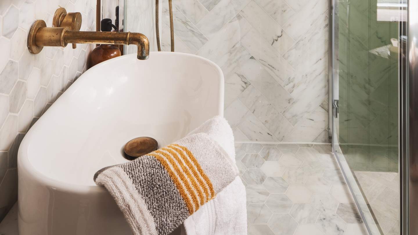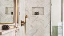 The exquisite bathroom makes ablutions a pleasure with a sumptuous freestanding, roll top bath - made for long soaks. In addition, there's a calcatta marble shower with rainfall head - totally blissful after deep nights' sleep. We just adore the vintage sink unit with quartz top, whilst the heated rail ensures towels are kept warm and fluffy.